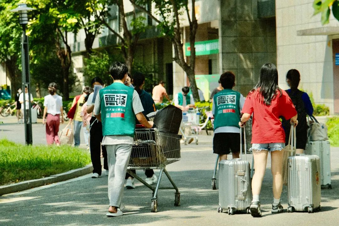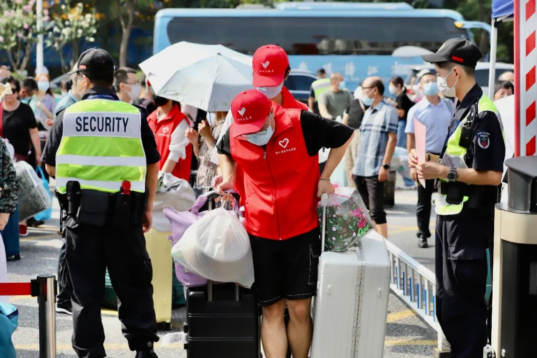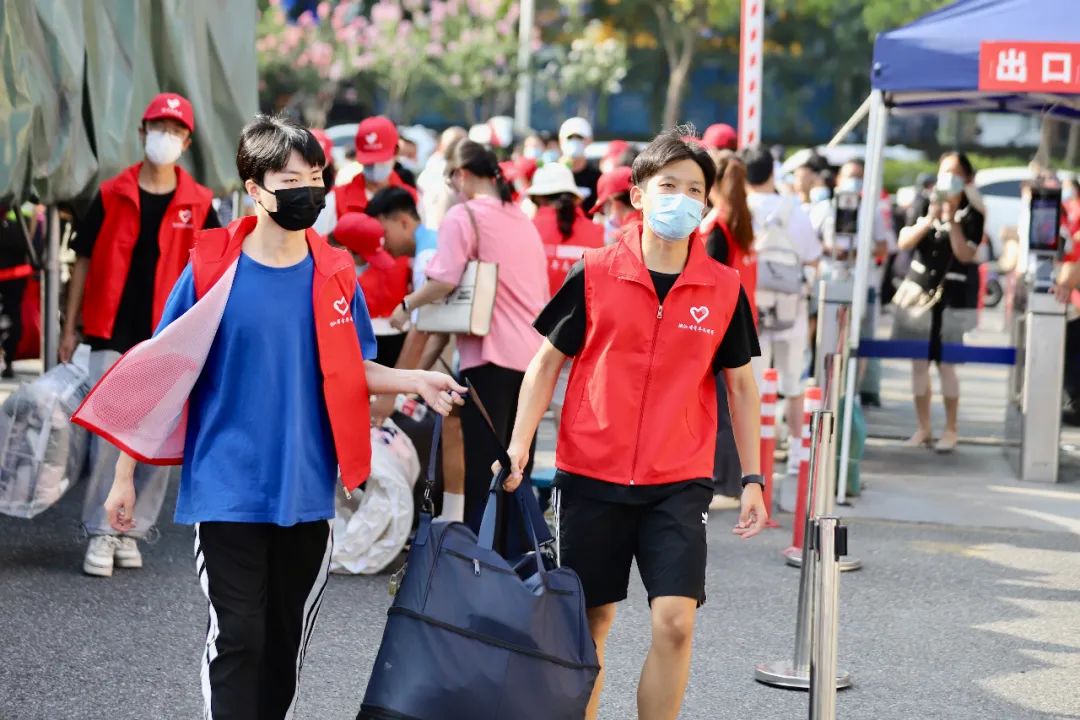 为确保新生顺利入校,报到当天,学生工作部、保卫处、后勤服务中心等相关职能部门及各二级学院师生严守岗位,为新生入学提供周到服务。此外,学校在高铁站、地铁站均安排了迎新专车,为新生入校保驾护航。入校处,新生军训教员团着装整齐,协助核验各类信息;入校后,身穿红马甲的志愿者在第一时间帮助新生提拿行李,送至各二级学院报到处和寝室,协助新生完成入学的全部工作。