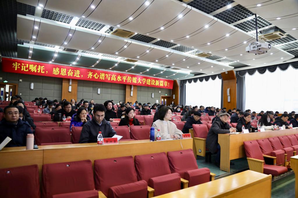 韦路在讲话中指出,2023年是学校发展进程中非常关键的一年。在省委省政府的领导下,在省委教育工委、省教育厅的指导下,学校党委带领全校师生员工勇毅笃行、奋力向前,以高质量党建引领保障高质量内涵式发展,高水平传媒大学建设交出了一份靓丽厚重提气的“成绩单”。