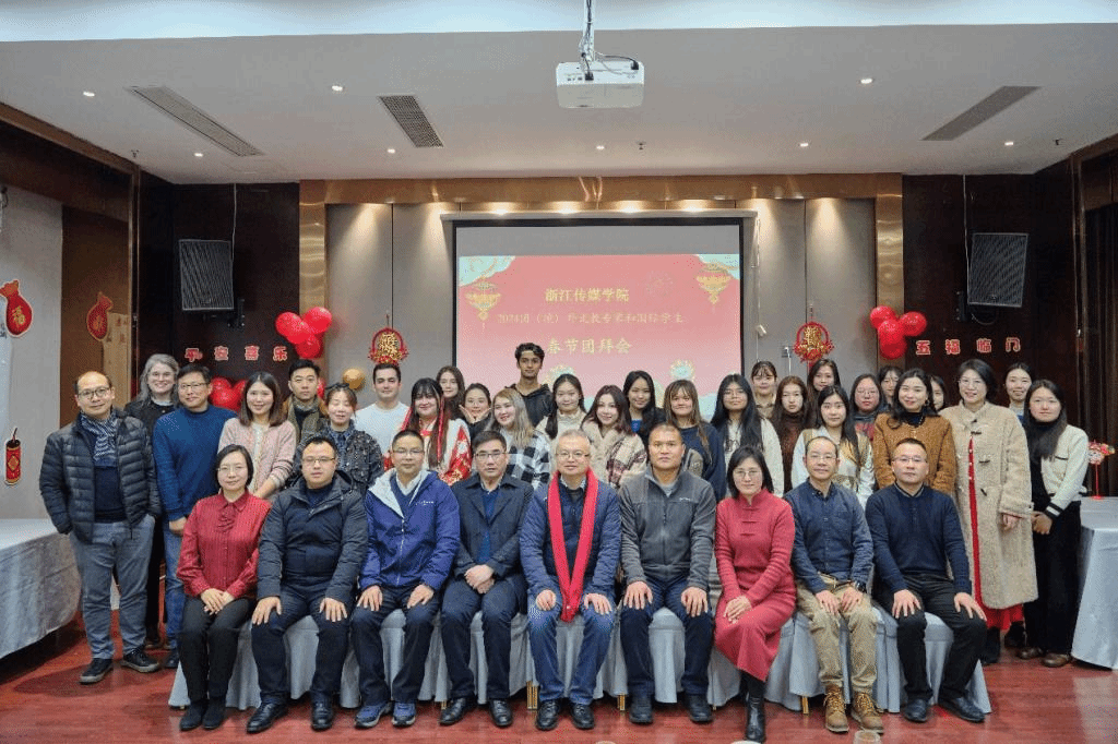 副校长姚争致新春贺词。姚争回顾了2023年学校国际化“以学校为主导、学院为主体、学者为主力”的工作格局,“学术研究、人才培养、文化传播、校际交流”四方互动的国际合作交流体系,结出的可圈可点的丰硕成果,尤其是在校工作和学习的国(境)外教师和国际学生积极工作、认真学习,取得了骄人的成绩,为学校的建设和发展贡献了力量。比利时籍外国专家马克西姆荣获2023年浙江省“西湖友谊奖”,国际学生作品荣获第九届浙江省大学生新闻界短视频、“熊猫杯”感知中国征文大赛等多项国家级比赛的一、二等奖。