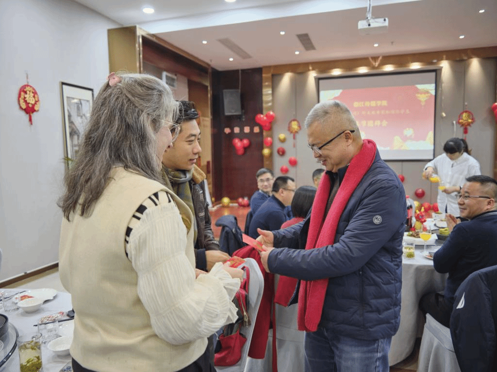 团拜会上,与会领导按照中国新年传统,给每位师生派发了红包和礼物,并举行抽奖等活动。共有来自五湖四海的近50位中外师生欢聚一堂,共享温馨年夜饭,喜迎新春佳节,现场气氛热烈,年味儿浓浓。