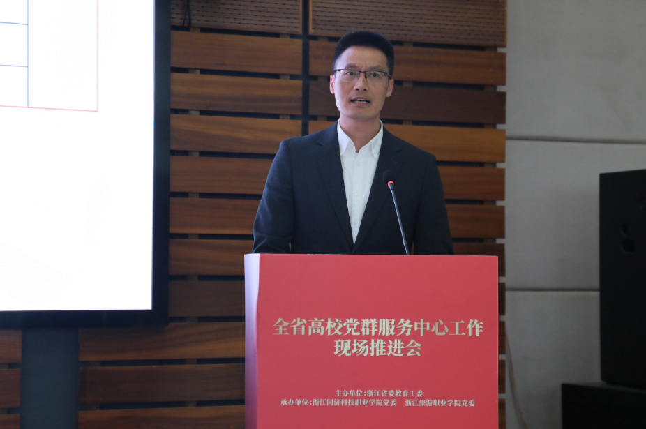 近日,全省高校党群服务中心建设现场推进会在浙江同济科技职业学院召开。伟德官网作为第二批全省高校示范性党群服务中心示范单位的先进典型代表发言。校党委委员、组织部(统战部)部长张雷从中心建设概况、主要做法及建设成果、下一步打算三个维度,向与会人员作了《以“360”工作体系打造浙传“红色新地标”》的交流发言。