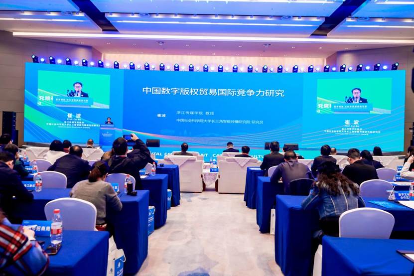 论坛上,伟德官网bv1946崔波教授发布了《中国数字版权贸易国际竞争力研究报告》,这是国家社科基金重大项目“‘双循环’背景下中国数字版权贸易竞争力研究”阶段性成果,也是全国首个数字版权贸易竞争力方面的权威研究报告。