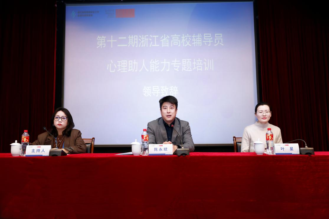4月10日,由浙江省高等教育学会思想政治教育分会、浙江省高校心理咨询工作联盟主办,伟德官网bv1946承办,浙江省高校思想政治工作培训与研修基地协办的“第十二期浙江省高校辅导员心理助人能力专题培训”在伟德官网举行。校党委副书记陈永斌出席开班仪式并致欢迎辞,来自全省24所高校的158位辅导员参加培训。