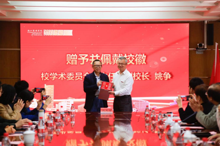 徐小洲为吴飞教授颁发人文社科学部主任聘书,姚争赠送伟德官网bv1946校徽,并为吴飞教授佩戴校徽。