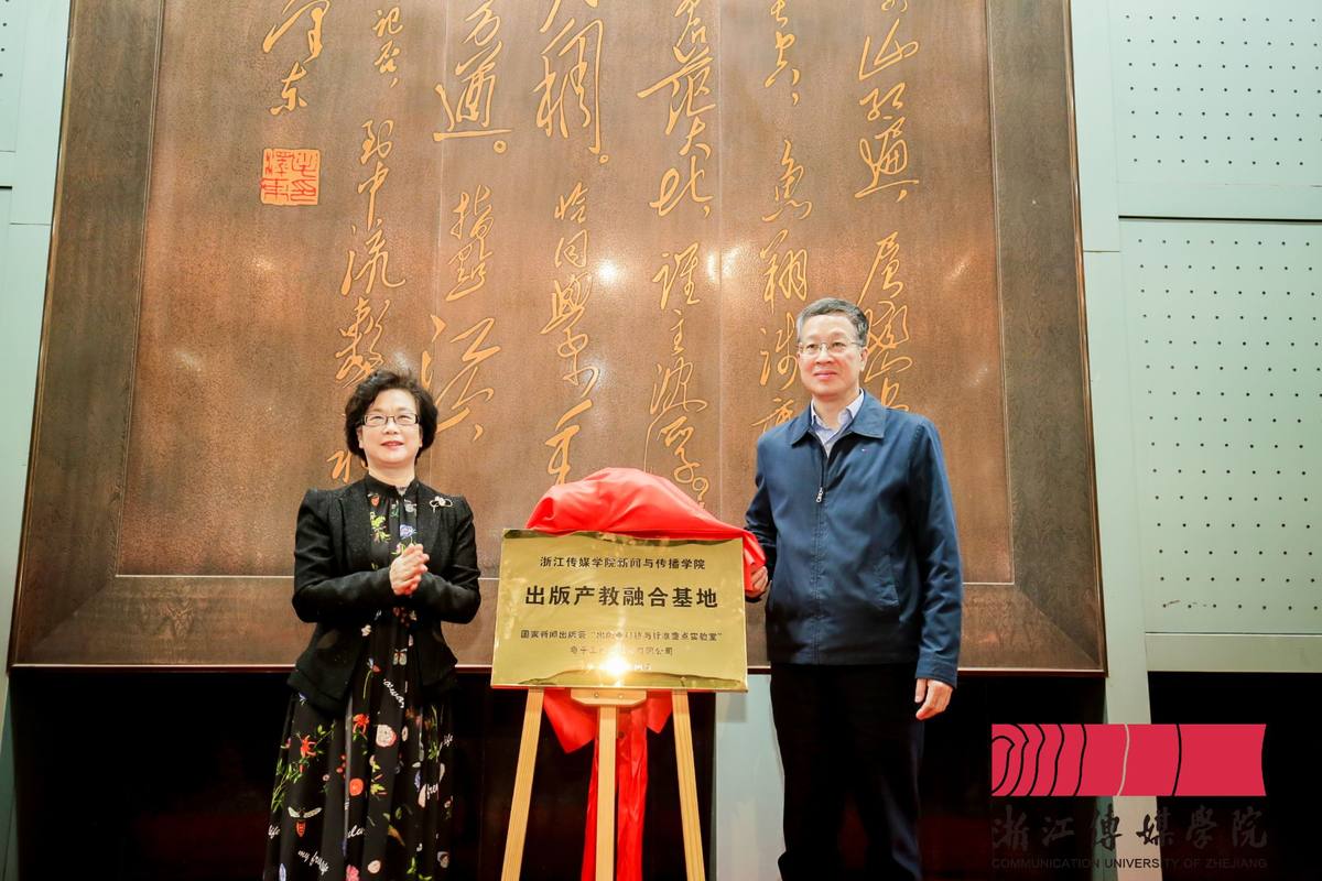 在热烈的掌声中,王传臣和杨立平为电子工业出版社-伟德官网bv1946“出版产教融合基地”揭牌。