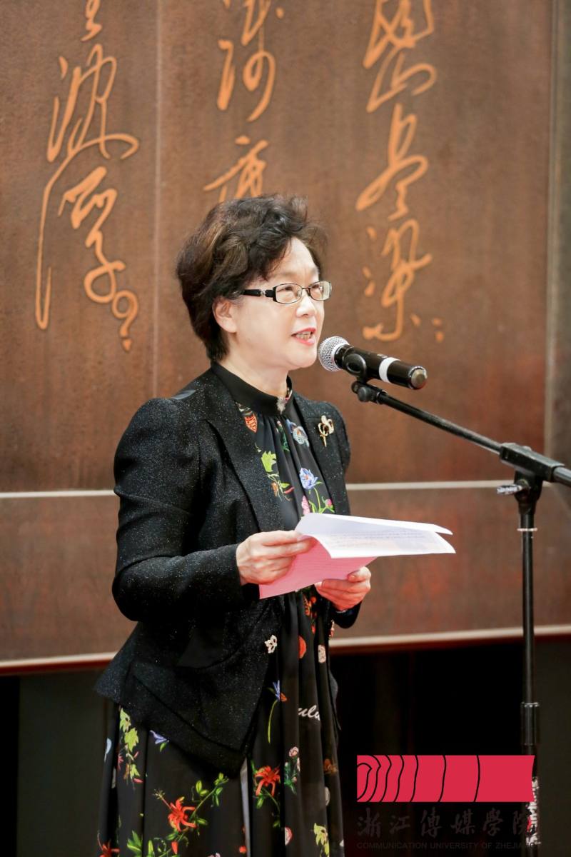 杨立平在致辞中向参加活动的各位领导嘉宾表示热烈欢迎,向支持关心学校发展的社会各界表达诚挚谢意。她简要介绍了学校建设发展情况特别是编辑出版学专业建设取得的成绩,并表示,将阅读这一推动人类文化传承的行为与5G时代的短视频呈现方式相结合,是浙传人践行习近平总书记视察学校提出“紧跟时代、突出特色”重要办学指示精神,推动全民阅读和“书香浙传”建设的有力举措,具有重要的时代价值与社会意义。