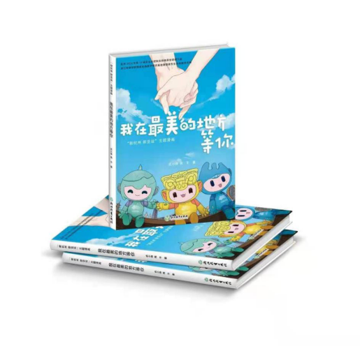 《我在最美的地方等你》由动画与数字艺术学院教师武小锋主创、10位漫插画学生协助完成,目前经亚组委授权,浙江教育出版社正式出版发行。该漫画绘本以一只粉黄蝴蝶(暗指化蝶后的祝英台)根据梦中情景幻化为少女来到杭州寻找一位少年(暗指化蝶后的梁山伯)为主线,通过他们动人的故事来表现爱、勇气、坚持、共享、利众、和合等价值观念,蕴含亚运会的宗旨和中国文化的精神。