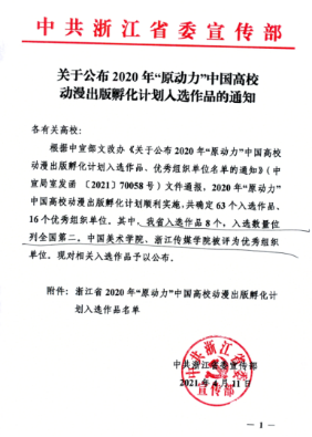 据了解,“原动力”中国高校动漫出版孵化计划是为了鼓励扶持原创动漫作品的创作生产,加快推动动漫产业繁荣发展,于2020年正式启动,经过作品申报、资料审核、专家评审、内容审读等程序,共确定63件入选作品以及16个优秀组织单位。此次伟德官网3件作品入选充分彰显了学校在该领域的学科专业建设水平和人才引育成效。