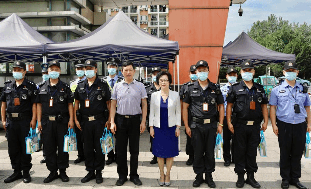 在下沙校区正大门门岗,校领导对保卫队伍一直以来的辛勤工作表示感谢,叮嘱他们暑期站好岗位,始终把效率、安全、稳定作为第一责任,同时注意自身防护和防暑降温。
