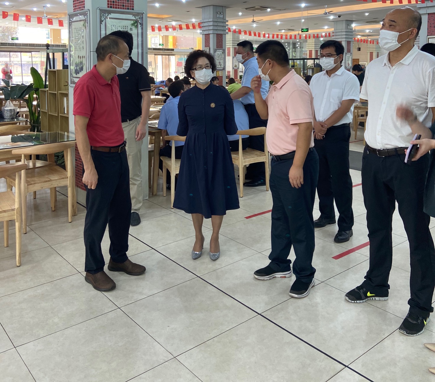 会后,杨立平一行在下沙校区深入一线指导疫情防控工作,实地检查了校园门岗、学生公寓、隔离区、食堂等重点区域,详细询问了疫情防控措施、应急处置机制、医疗物资储备等情况,严格落细落实各项防控措施,并向坚守在一线的后勤、保卫员工致以诚挚的慰问。