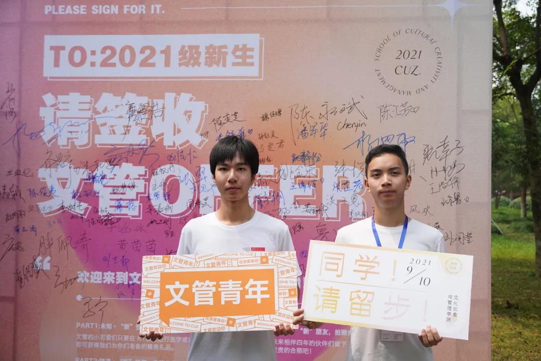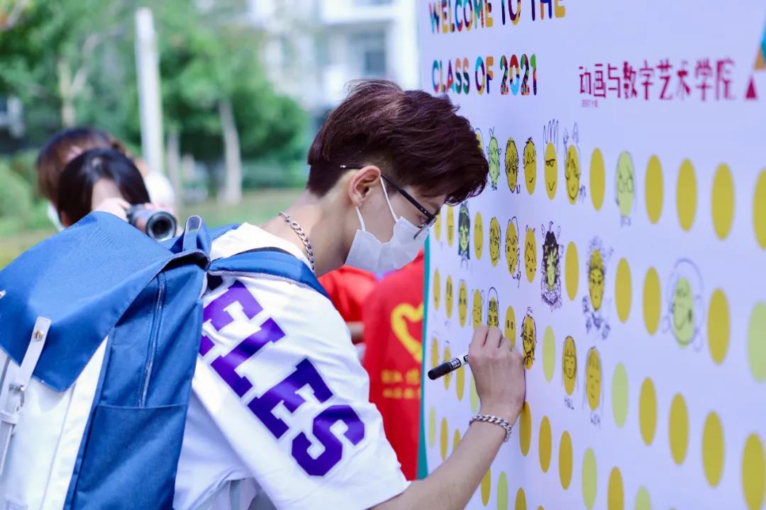 迎新现场,各二级学院结合专业特色,设计了异彩纷呈的大型喷绘,上演迎新快闪,让新生们入校之初就能感受到浙传鲜明多样的专业特色和丰富多彩的校园文化。