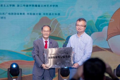 现场还举行了浙江省媒介素养教育研究会诗词传播专业委员会、新联诗词传播示范公益基地、国际人文交流与传媒人才实践基地、研究生实习基地等授牌仪式。