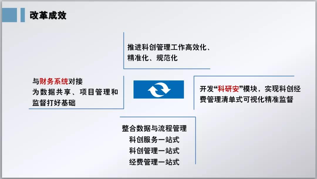高校的科研经费问题作为一个监督难点,一直受到社会的广泛关注。2021年,学校被确定为浙江省公权力大数据监督应用建设试点单位,作为“科研安”监督系统建设4所试点高校之一,经过三个月的集中攻关,以实现“科研经费安全、科研人员安心,并安顺结出科研成果”为建设目标,以科创经费管理监督为“小切口”,运用嵌入式监督构建“一舱三阀四模块”多跨协同监督场景,提升了学校科研经费数字化精准监督,不仅为广大科研人员提供了方便,也为学校管理决策提供了支撑。