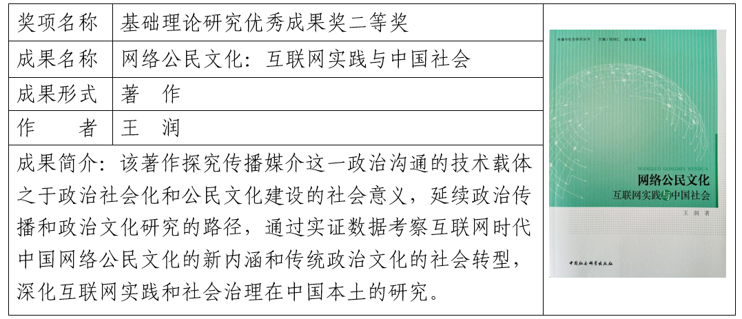 在本次成果奖评选中,伟德官网共报送成果34项,其中研究报告3项,论文15项,著作16项,最终5项成果获奖。