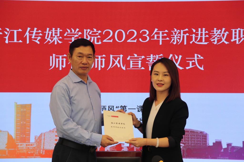 培训现场,新进教职工进行了师德师风宣誓,并签署师德承诺书。