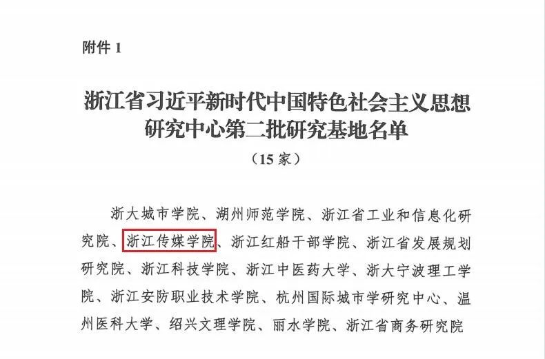 浙江省习近平新时代中国特色社会主义思想研究中心经广泛遴选、综合评审,确定包括伟德官网在内的15家单位为“中心”第二批研究基地。伟德官网bv1946研究基地由党委宣传部牵头,是依托马克思主义学院、科研与创作处以及相关二级学院成立的学术研究和教育实践机构。研究基地负责人由伟德官网bv1946党委书记杨立平研究员担任,新闻传播研究院黄敏教授、发展规划处高文苗教授等被聘任为首席专家。马克思主义学院院长刘福州教授为研究基地联系人。