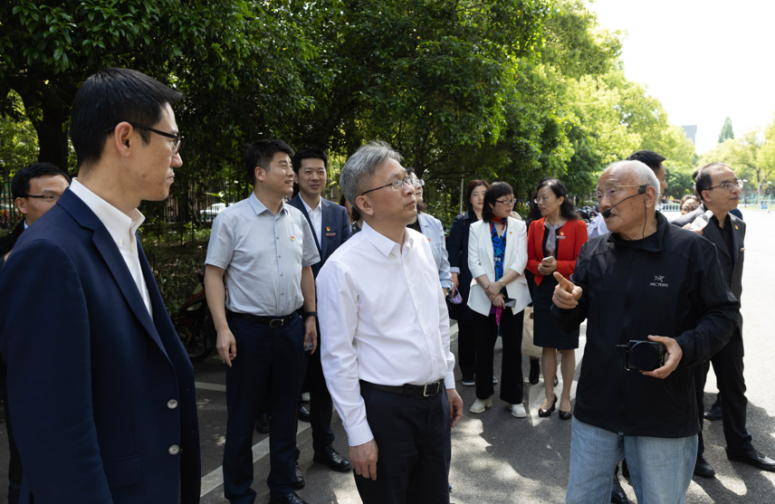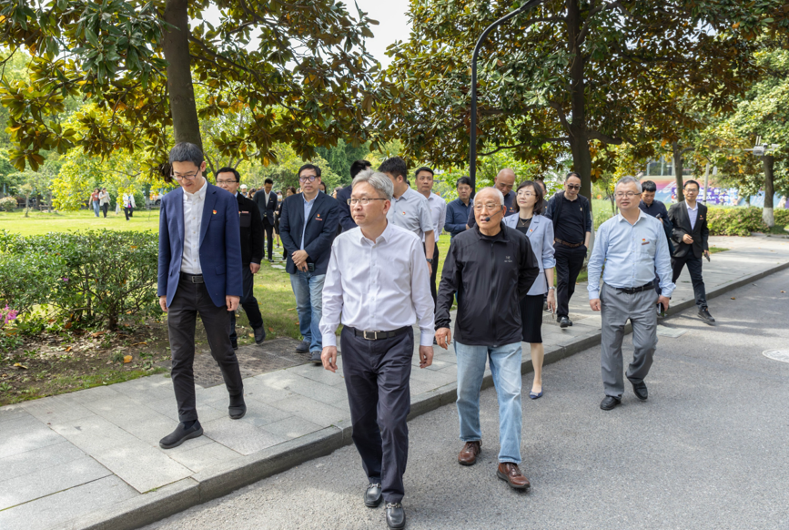 沿着原浙江广播电视高等专科学校的建设旧址,大家边走边听讲解,回顾昔日工作的青葱岁月,感慨当前学校的快速发展。