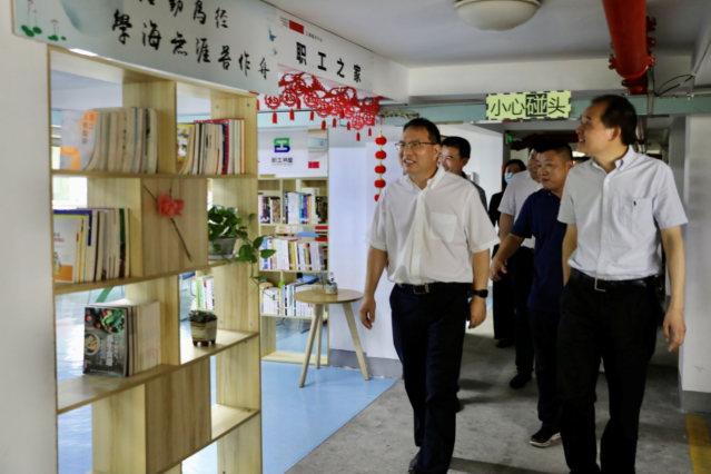 在后勤服务中心“职工之家”,王玉庆一行参观了书画室、廉政书屋、器材活动区和球类活动区。后勤服务中心主任缪春华、分工会主席宋冬冬介绍了后勤一线员工健身娱乐、学习休闲等情况。
