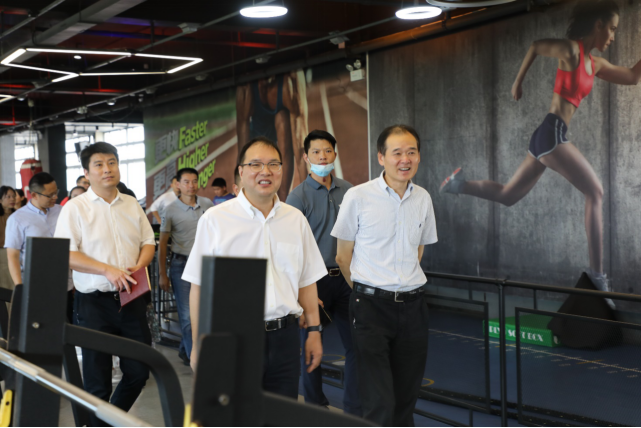 王玉庆一行首先参观了伟德官网教职工活动中心---氧适堡健身中心,听取了关于健身设施设备、教职工参与活动情况介绍。氧适堡健身中心是伟德官网工会联合后勤服务中心与社会健身机构合作的创新之举,免费为教职工提供健身服务,共有营业面积3500余平方米,拥有健身设施设备100余件,并推出了适合女性健身的“空中瑜伽”等项目。