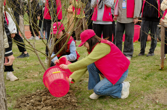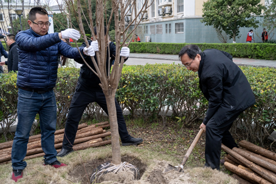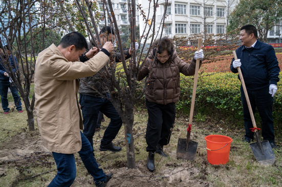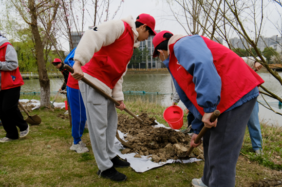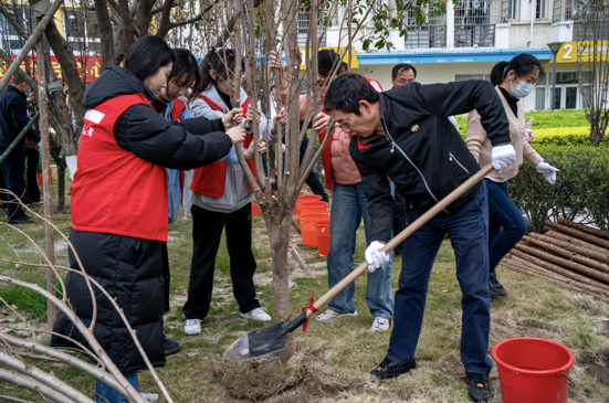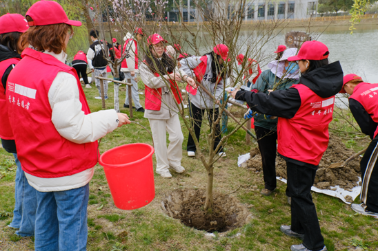 据了解,本次植树活动共栽种红叶李、帚型桃、天目琼花、红枫、金桂等100余株树苗,共有160余名师生参与到植树活动中。