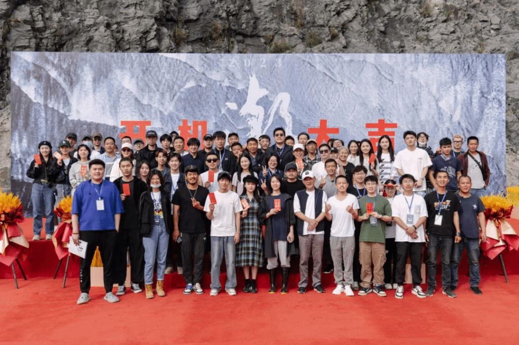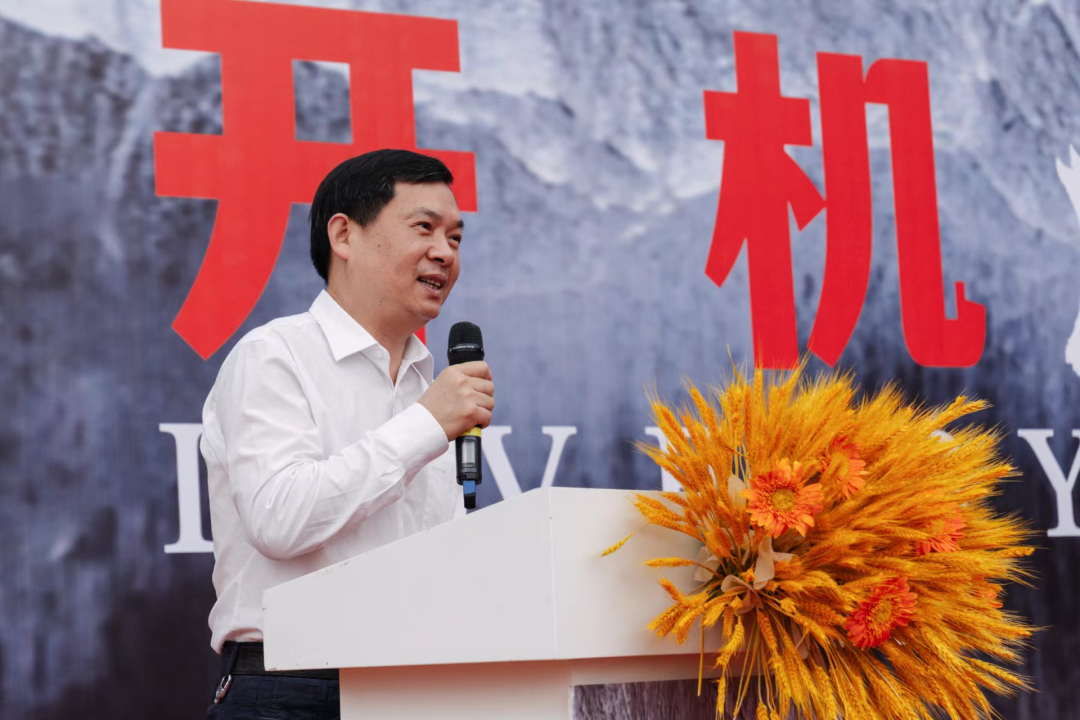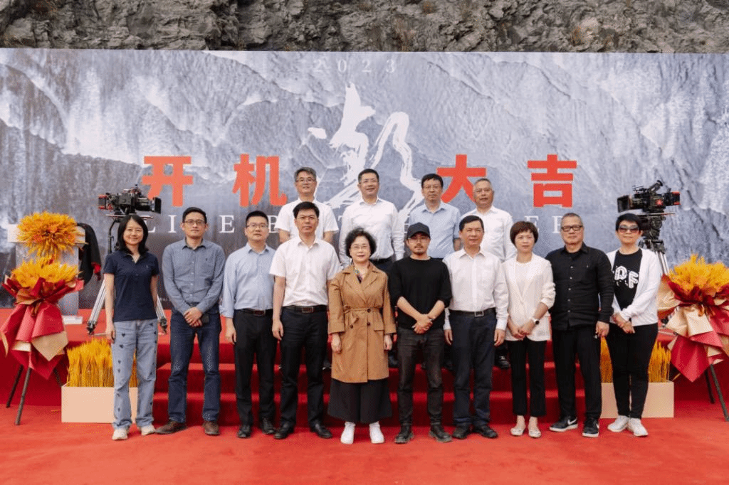 杨立平宣布院线电影《潮》正式开机,并和金光炎共掀摄影机红布,共庆电影开机。