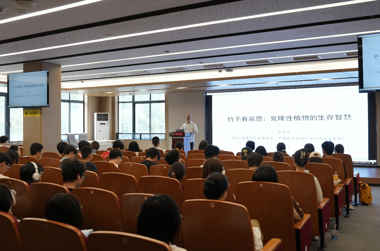 当天下午,图书馆报告厅内座无虚席,金爱武以“竹子有意思”为题,为浙传师生作了一场生动有趣的科普讲座。作为浙江农林大学教授、著名的竹子专家,他从竹子的生态价值、文化意义及产业化应用等多个维度,深入浅出地阐述了竹子与人类文明的紧密联系,并借竹子坚韧不拔、高风亮节的精神品质,激励师生争做社会主义品才兼修的国家栋梁。讲座赢得了师生的阵阵掌声。