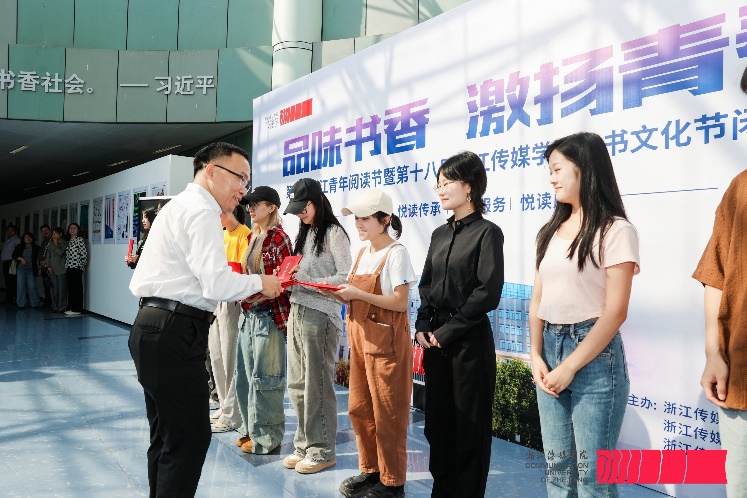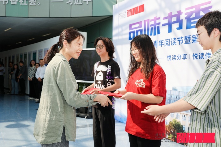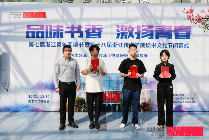 据悉,此次读书文化节活动设置了“图小传”2.0 update创意设计大赛奖、“你好,亚运”摄影大赛优秀奖、“书香美学——图书馆空间创意展”奖、第三届“为你读一本好书”校园短视频大赛、“阅读达人”奖等五类奖项,共465名师生获奖。在场嘉宾为获奖学生代表颁发荣誉证书。