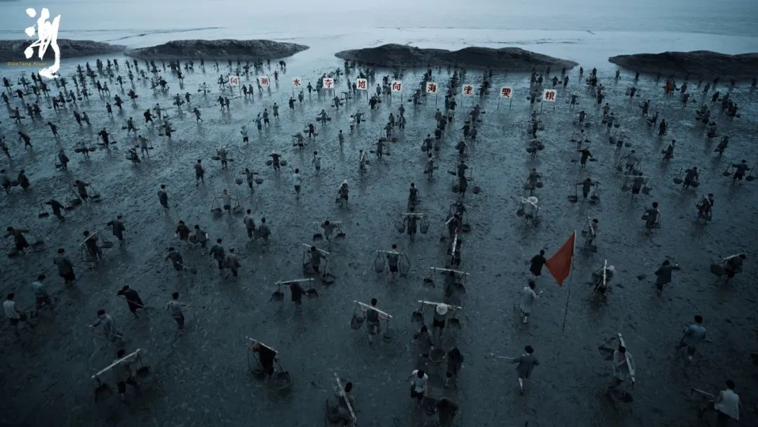 影片《潮》以杭州萧山围垦为历史背景,讲述了生长在钱塘江南畔的沙地人为了生存,面对汹涌的潮水,在物质极度匮乏的条件下依靠血肉之躯进行围江造地的故事。全片大部分使用方言对白,力求尽可能贴近这段乡土历史,偶尔穿插的民谣、号子,增添了浓厚的乡土情怀和文化情结,用诗意的影像美学,为观众呈现了一部江南特色的造地史诗。