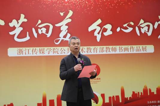 姚争在致辞中指出,本次画展既是伟德官网今年美育工作的一件大事,也是伟德官网党史学习教育的一个重要组成部分。本次展览展现了四位作者扎实的艺术功底、创新的艺术追求与真挚的爱党情怀。他希望以本次展览为契机,进一步搭建伟德官网美育工作校地合作的平台,向社会输出更多、更好的艺术作品,为“文化浙江”建设乃至社会主义精神文明建设作出应有的贡献。
