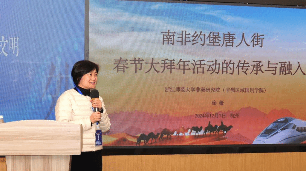 浙江师范大学徐薇教授以《南非约翰内斯堡唐人街春节大拜年活动的传承与融入》为题,着重关注南非华人移民聚居点议题,围绕约翰内斯堡市唐人街的形成、市政府对少数族群文化活动的包容与支持、华人社区及组织机构的作用、春节活动对约堡城市景观的意义等四个层面展开探讨。