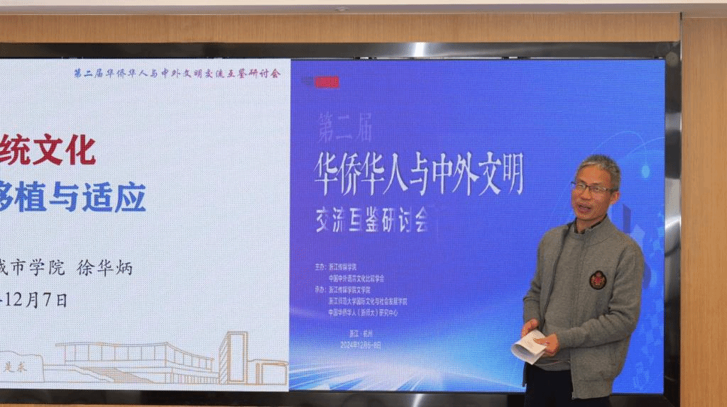 浙大城市学院徐华炳教授以《中华传统文化在海外的移植与适应——以“娘惹文化”为例》发表演讲,重点分析该族群文化的生成、承继、在地生存困境、调适与重塑等问题,并结合相关案例,阐述中华传统文化在海外移植与适应的特点和路径。