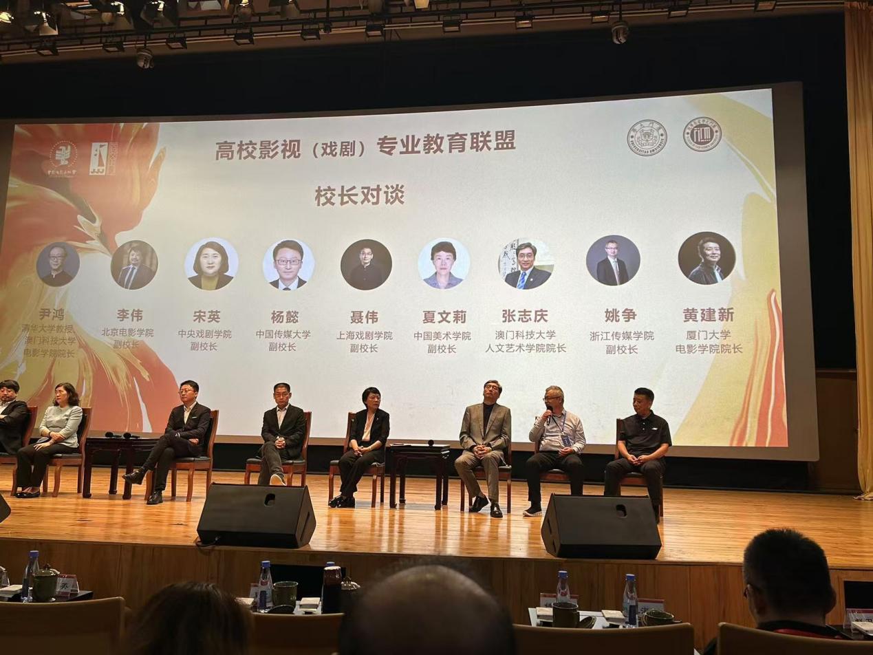 伟德官网副校长姚争参加了高校影视(戏剧)专业教育联盟校长对谈。8所高校代表围绕影视教育的创新合作、资源共享、产教融合和AI技术革命带来的影响等话题展开了深入研讨交流。