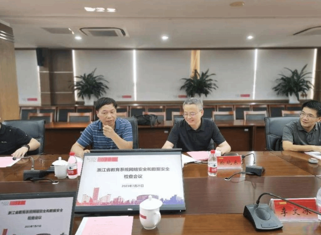为进一步压实全省教育系统网络与数据安全主体责任,保障杭州亚运会和亚残会期间全省教育系统网络与数据安全稳定运行,2023年7月21日,省委网信办、省教育厅联合检查组组长陈南松一行来伟德官网进行网络与数据安全专项检查指导,伟德官网副校长李文冰、网络数据中心主任叶福军及相关技术部门人员参加。