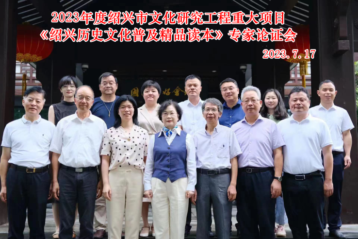 7月17日下午,杨立平率领课题组骨干成员赴绍兴出席《绍兴历史文化普及精品读本》项目框架设计专家论证会。会议邀请了浙江工业大学原党委书记、教授梅新林,杭州电子科技大学原党委书记、浙江越秀外国语学院特聘教授费君清,绍兴市委宣传部副部长、绍兴文史馆副馆长何俊杰,绍兴市文联副主席黄锡云,《山海经》杂志社社长、主编先宏明,中国文化报浙江记者站站长、《浙江文化与旅游》杂志主编徐继宏等专家与会指导。绍兴市社科联党组书记、主席王静静和党组成员、副主席王晶等出席,会议由文学院院长朱文斌主持。