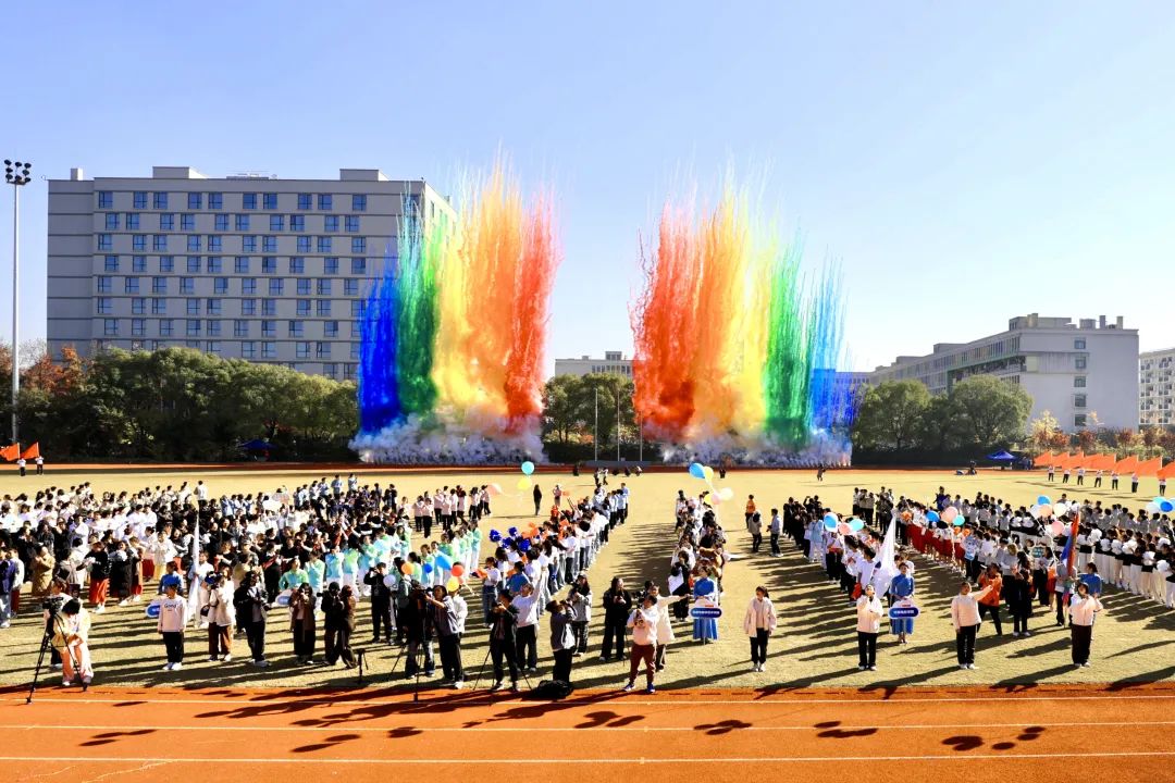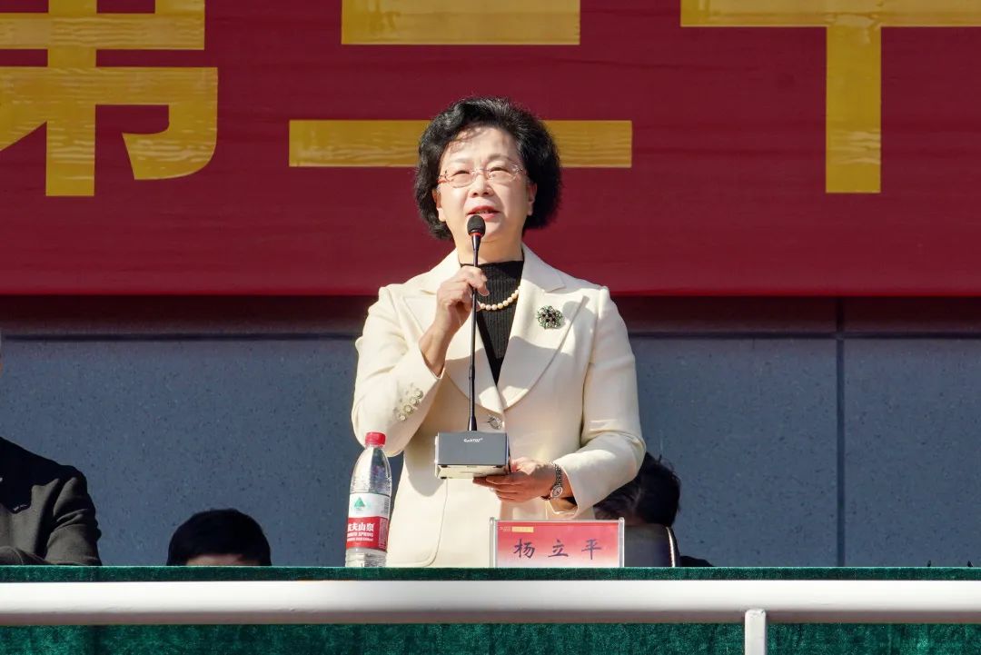 彩烟四射,礼花绽放,杨立平宣布运动会开幕。
