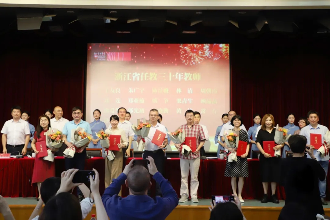 副校长李文冰宣读“浙江省任教三十年荣誉教师”名单。