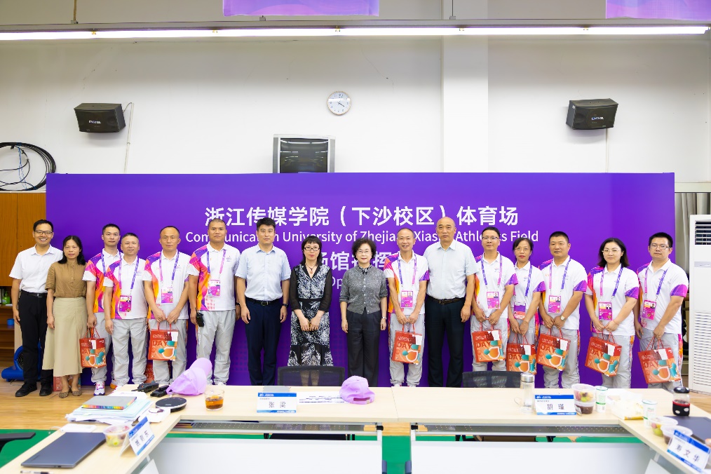 为确保伟德官网亚运场馆冲刺阶段相关服务工作有序进行,更好助力杭州亚运会,9月20日下午,校党委书记杨立平,党委副书记徐伟标,副校长李文冰,党委副书记陈永斌一行前往学校亚运场馆慰问场馆运行团队,办公室、校工会、全媒体实验创新中心等单位负责人陪同慰问。