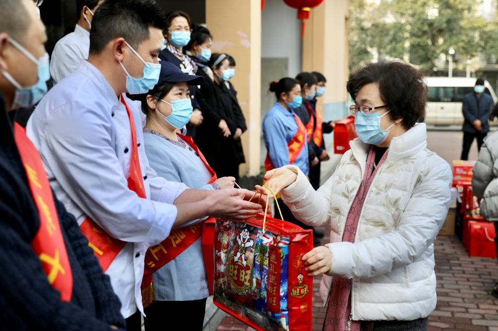 在荔枝园食堂餐厅,杨立平充分肯定后勤员工一直以来的服务工作,希望后勤员工在新的一年里继续坚持以师生为本,爱岗敬业,认真做好各项保障工作,努力为学校事业发展作出应有贡献。