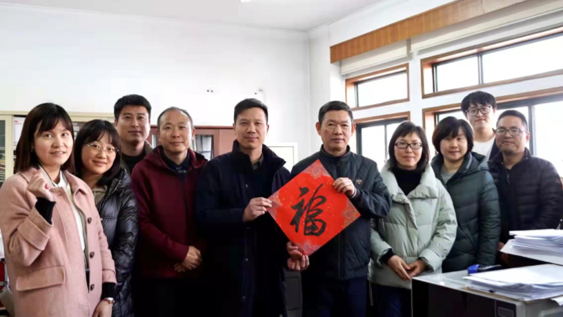 在各二级学院和部门,徐小洲为广大教职工送上“福”字,他对大家在过去一年里的辛勤工作表示感谢,并希望大家在新的一年里再接再厉,再创辉煌,以高度的政治责任感和争创一流、走在前列的精神风貌,加快建设国内一流、国际知名特色高水平传媒大学。