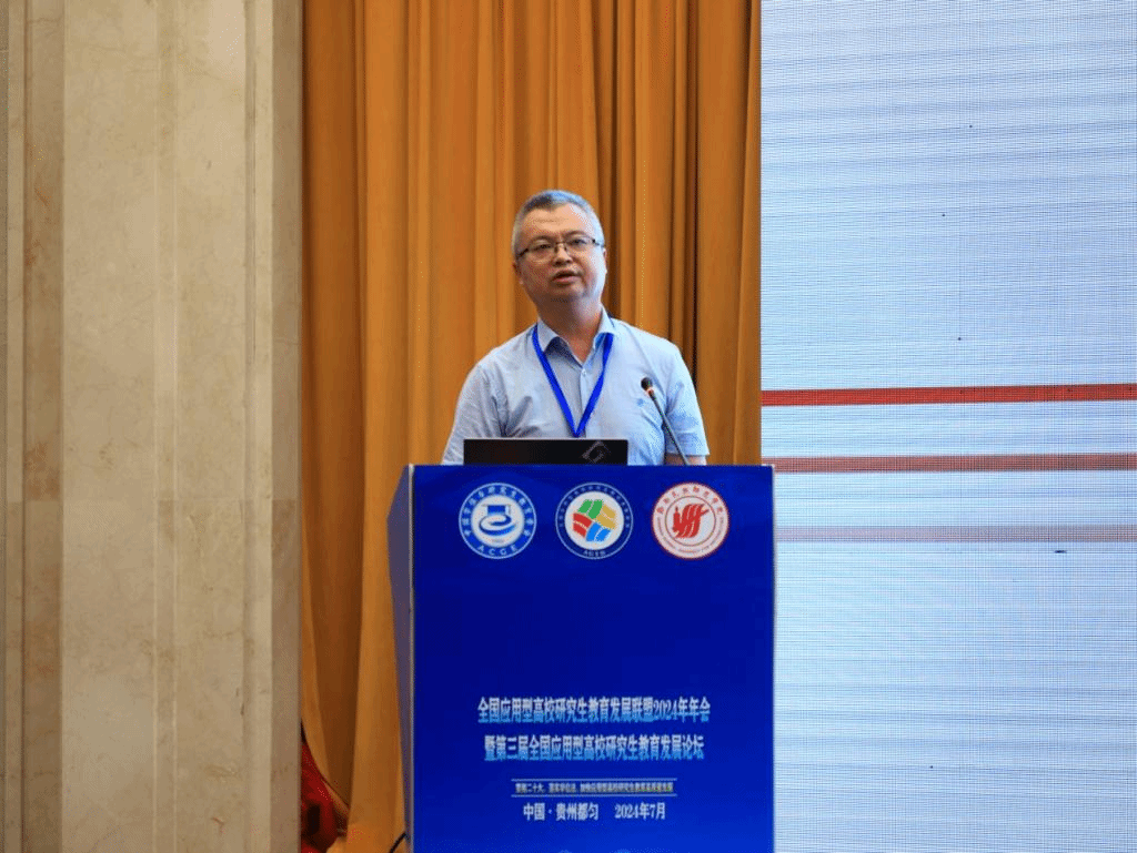 7月12-13日,第三届全国应用型高校研究生教育发展论坛暨全国应用型高校研究生教育发展联盟2024年年会在贵州举行。本次会议由中国学位与研究生教育学会、全国应用型高校研究生教育发展联盟主办,黔南民族师范学院承办,会议主题为“贯彻二十大,落实学位法,加快应用型高校研究生教育高质量发展”。教育部学位管理与研究生教育司(国务院学位委员会办公室)一级巡视员唐继卫作主题报告,来自全国73所应用型高校约200余名专家学者参加会议。