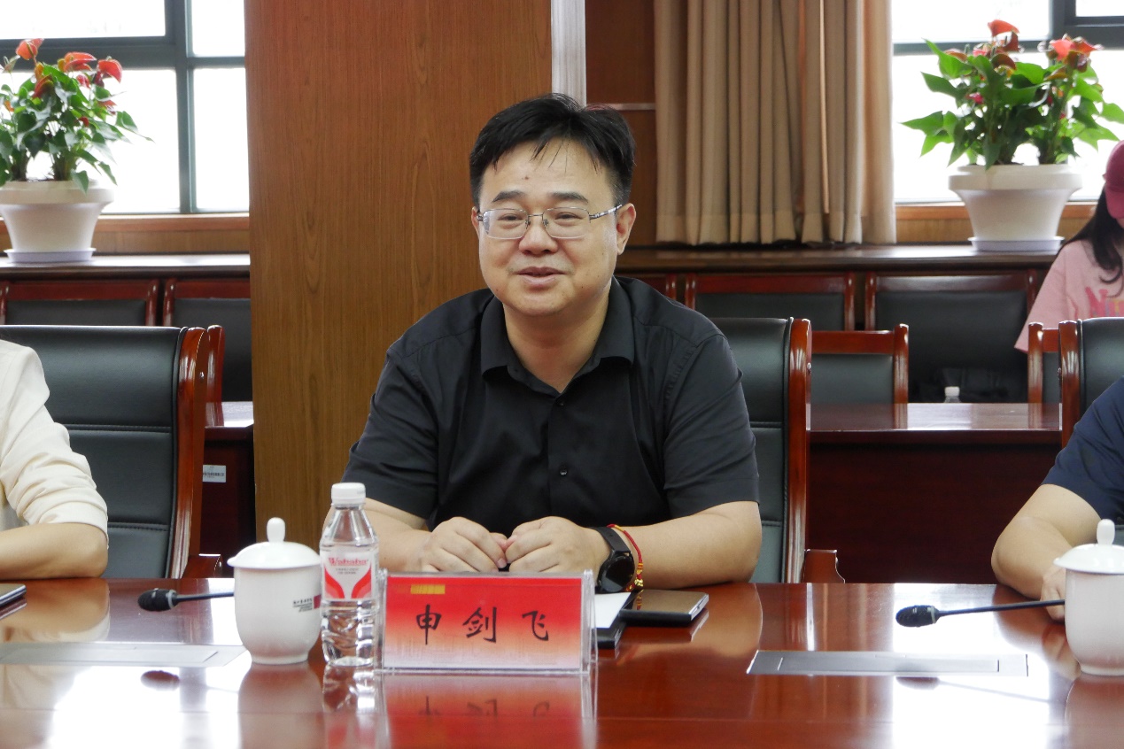 李文冰对申剑飞一行的到来表示欢迎,并简要介绍了学校建设发展情况。她表示,学校在数智时代播音与主持艺术专业如何与新媒体进行融合培养、校企合作如何开展实施、数字媒体艺术设计专业人才培养、视觉传达专业课程体系建设等方面进行了大量有益探索并取得较好成效。她希望双方进一步加强交流合作,实现互利共赢。
