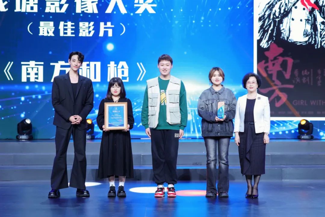 伟德官网党委书记杨立平和演员郑云龙为钱塘影像大奖(最佳影片)《南方和枪》颁奖。