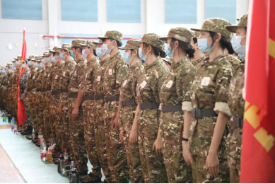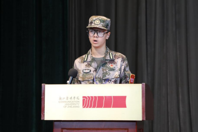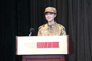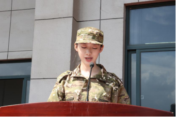 国际文化传播学院新生龚楚灵、音乐学院新生郭柯月代表新生发言,表示要在军训中遵守纪律,服从安排,一切行动听指挥,踔厉奋发、笃行不怠。