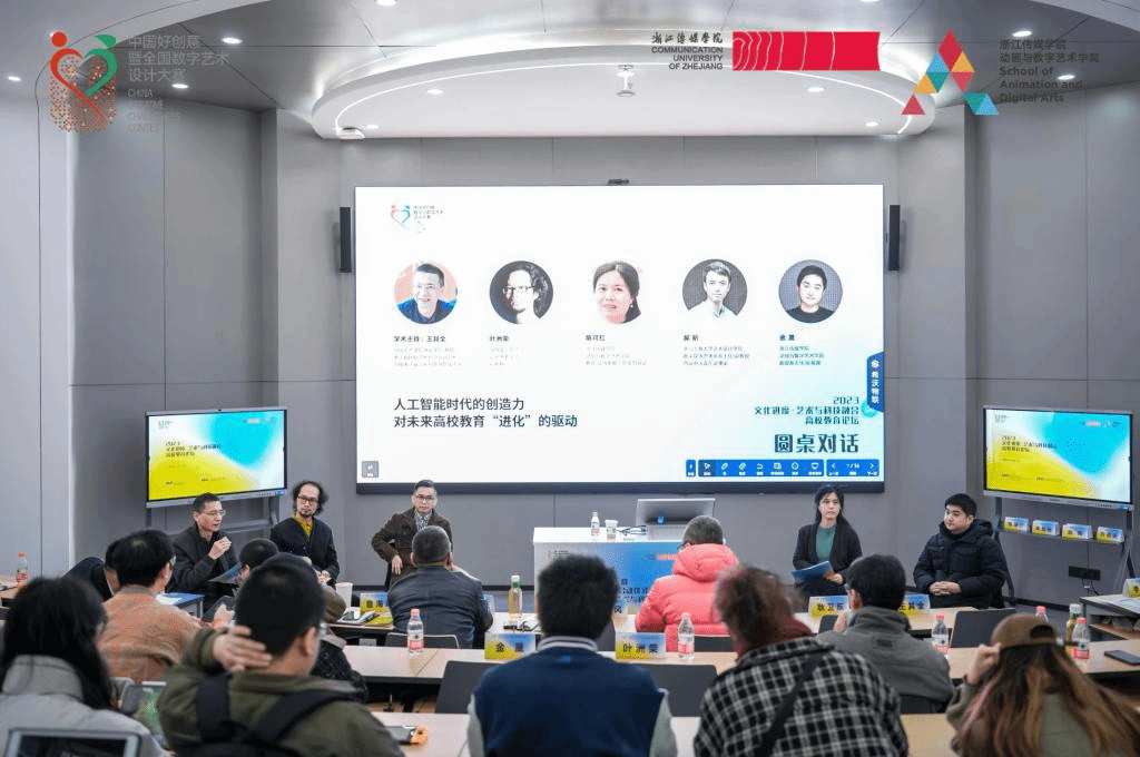 圆桌对话由叶佑天教授、王其全教授、俞佳迪教授、杨超教授、姜燕冰副教授、雷涛副教授分别担任学术主持,参会嘉宾针对文化、艺术与科技融合对高校教育的影响、人工智能时代的创造力对未来高校教育“进化”的驱动、人工智能艺术的美学、AI 驱动教学创新、AIGC 赋能创意产业等业界热点主题展开了深刻的发言讨论。