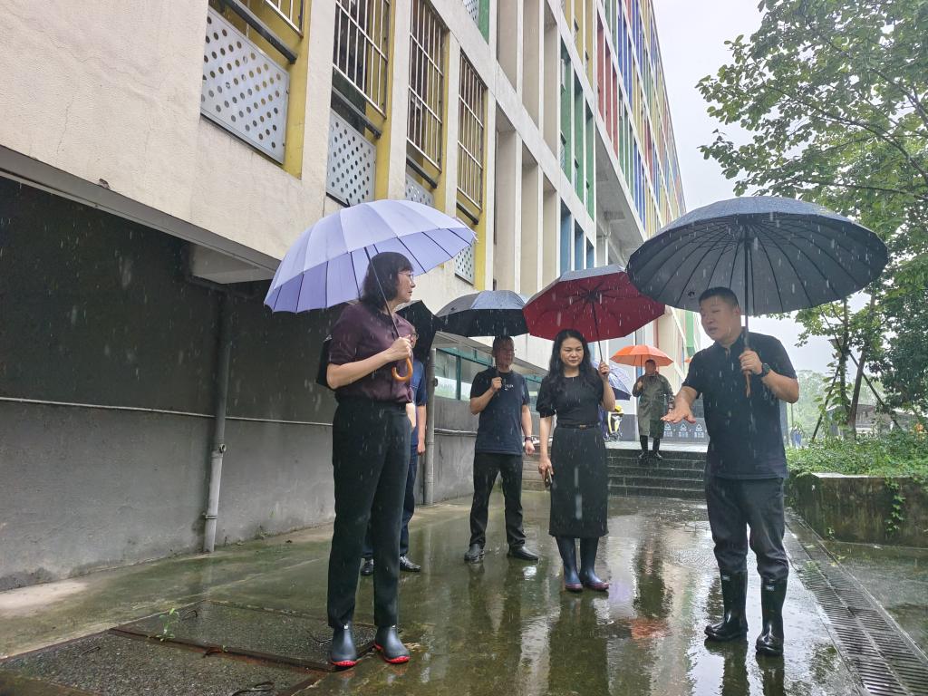 近期梅雨连绵,校园每天都经受着中到大雨的洗礼,防汛形势严峻。6月27日下午,副校长姜雯深入一线,专项检查校园防汛工作,后勤服务中心班子成员陪同检查。