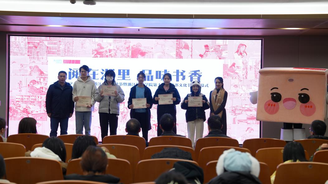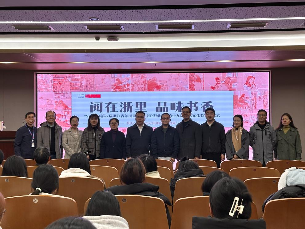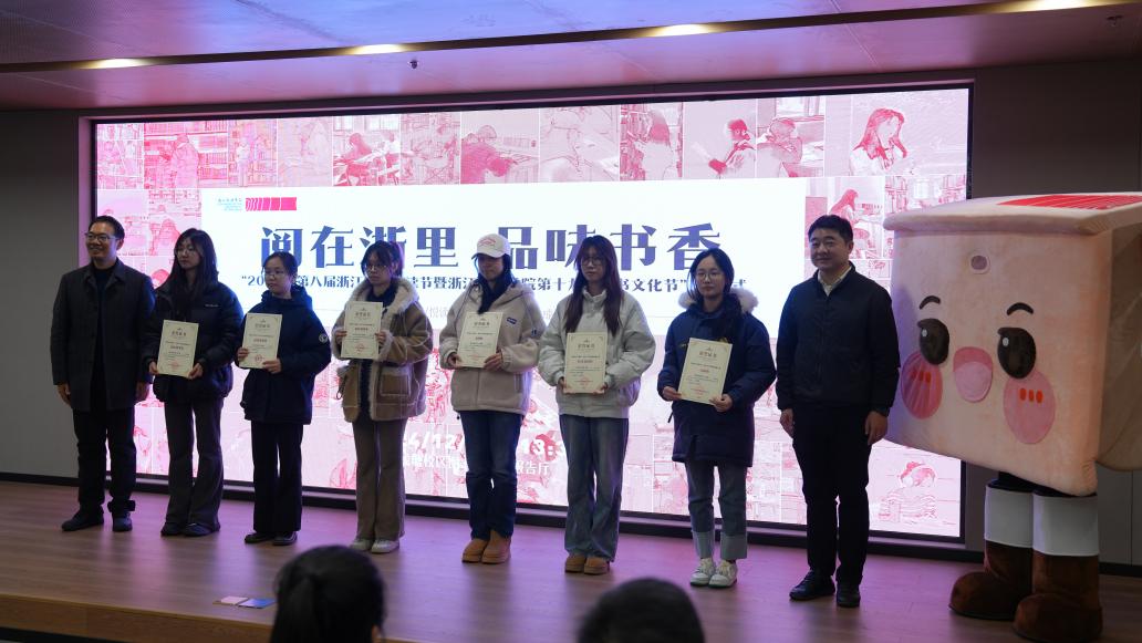 12月10日下午,由校图书馆、出版学院联合主办,校书影协会承办的第八届浙江青年阅读节暨第十九届伟德官网bv1946读书文化节闭幕式在伟德官网钱塘校区举行。校党委委员、宣传部(教师工作部)部长孙保胜,浙江省作家协会副主席、电视与视听艺术学院教授鲁强,杭州市钱塘区白杨街道党工委委员翁柘文,潮新闻创作者运营部副主任袁琦,学生工作部、教务处、研究生院(研究生工作部)、校团委、出版学院等单位负责人,相关师生代表等参加,活动得到了中国青年网、中国青年作家报、潮新闻等媒体的支持。