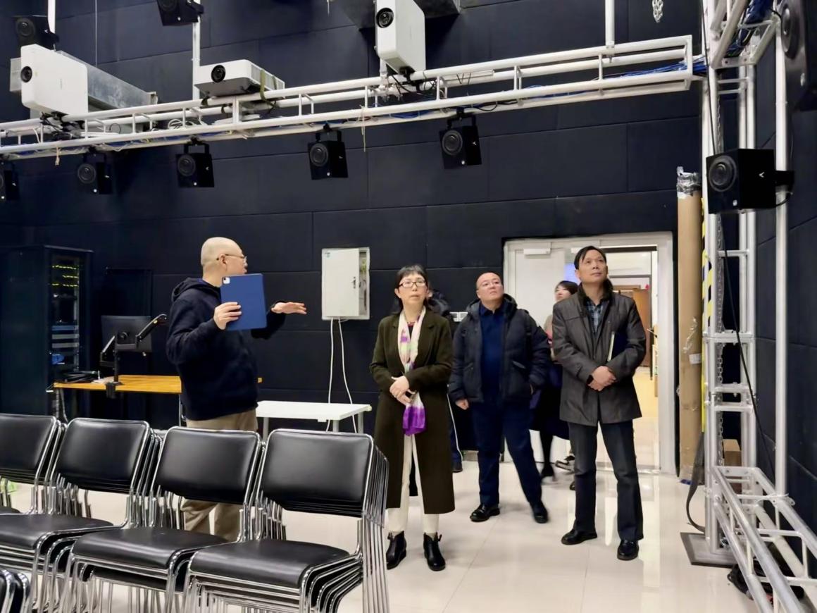 12月12日,北京电影学院党委常委、副院长李伟,教务处、影视技术系、摄影系、声音学院和影视实验中心等单位负责人出席座谈会,双方围绕“人才培养方案修订”“教学成果奖培育”“实践教学体系设计”和“实验室建设”等议题,进行了充分的沟通与交流。调研组一行先后考察了声音创作与工程中心消声室、未来视听实验室。