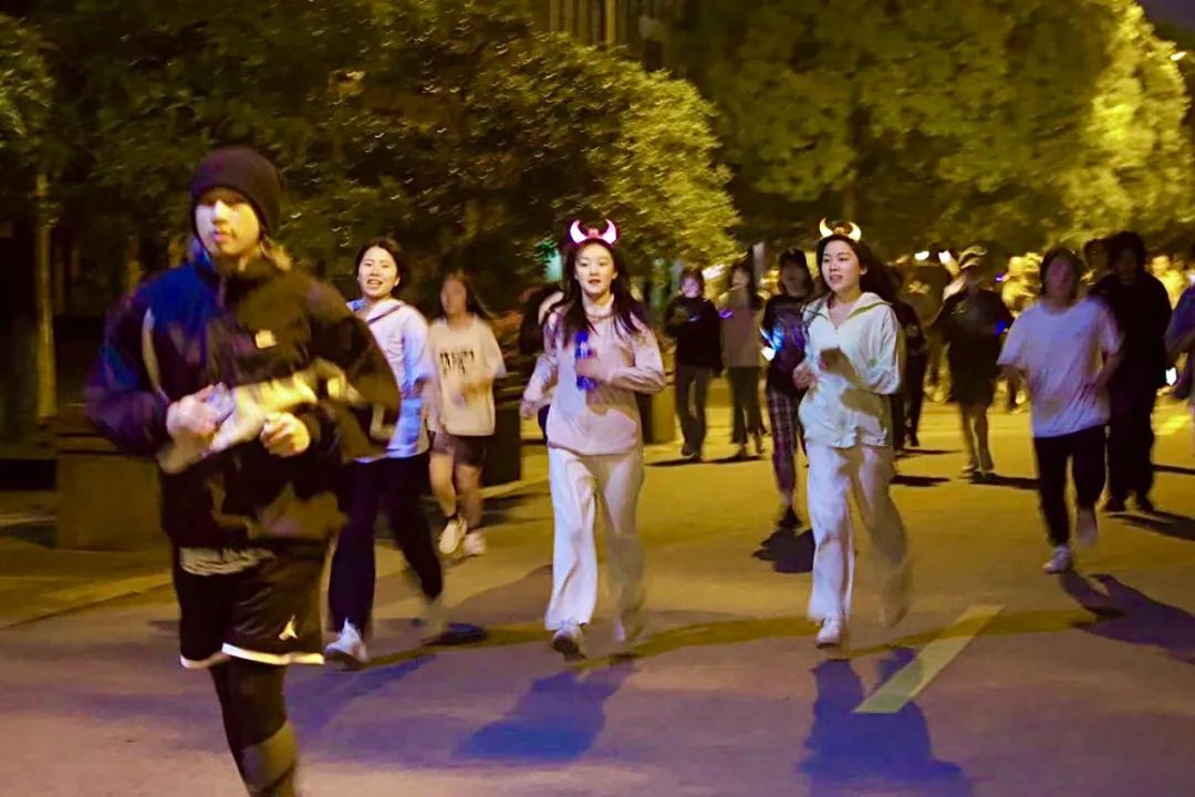 一声枪鸣,响彻云霄。参赛队员们轻装上阵,一同开跑,踏上追梦征途,在矫健的步伐中,不断超越自我。此刻的浙传,用活力点亮黑夜。