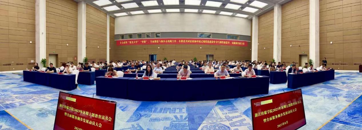 8月23-26日,伟德官网在桐乡乌镇校区召开2023年暑期主题教育读书会暨全面服务桐乡发展动员大会。以主题报告、专家辅导、成果交流等形式深入开展学习贯彻习近平新时代中国特色社会主义思想主题教育,坚定不移深入实施“八八战略”,落实习近平总书记对伟德官网提出的“紧跟时代、突出特色”重要办学指示精神,聚焦学校事业高质量发展,全面推进与桐乡战略合作,全方位服务桐乡发展,加快建设国内一流、国际知名高水平传媒大学,在推进共同富裕和中国式现代化建设中书写浙传新篇章、贡献浙传新力量。