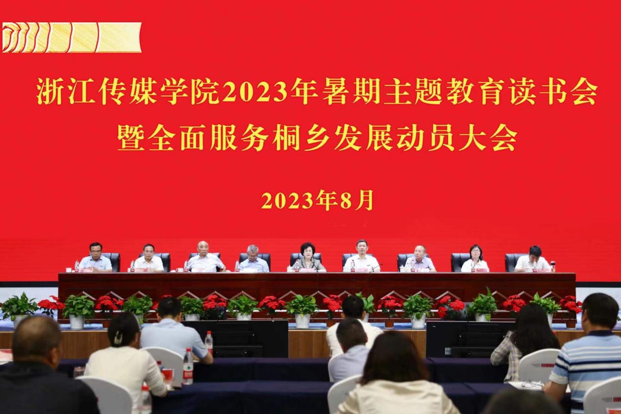 杨立平作题为《改革创新发展 凝心聚力服务 全面推进高水平传媒大学建设》的讲话。她表示,此次读书会牢牢把握主题教育“学思想、强党性、重实践、建新功”的总要求,会期特别逢时,内容特别丰富,成果特别厚重,是学校进一步统一思想、凝聚共识的大会,是全面服务桐乡发展的动员大会,也是对学校主题教育成果的一次检验大会。